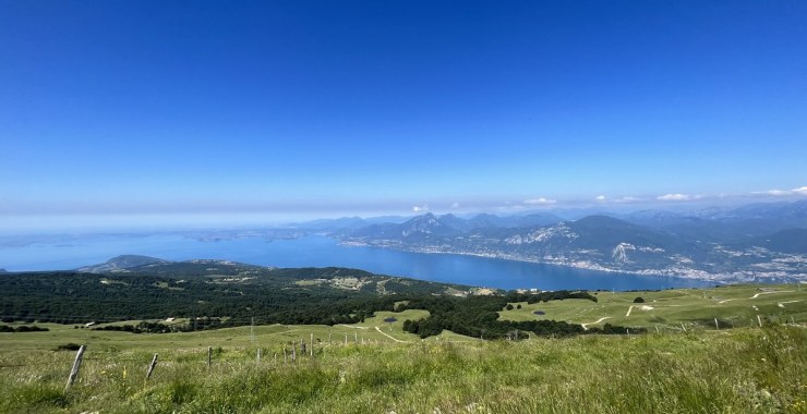 Il primo colpo di “wow,“ si incontra qualche metro dopo Bocchetta Naole quando per la prima volta, dopo aver attraversato un cancello che limita i recinti per i pascoli, ci si affaccia sul Lago di Garda.