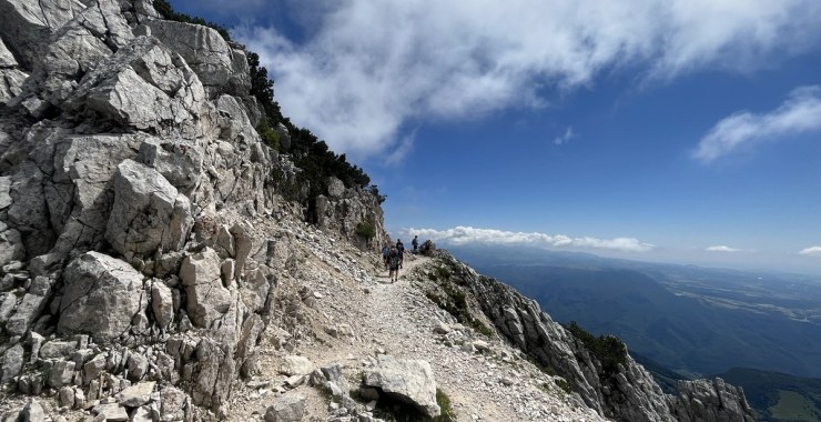 Dal Passo del Cammino inizia la parte più suggestiva della gita. Il sentiero ora è scavato nella roccia e regala passaggi mozzafiato e qualche tratto leggermente esposto.