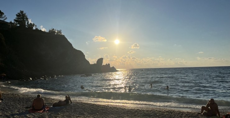 Si continua a scendere per la comoda scala fino a raggiungere la prima spiaggetta. Chi se la sente, e lo consiglio, può continuare passeggiando tra gli scogli in direzione Nord-Est e raggiungere altre parti di spiaggia veramente straordinarie (e meno affollate).