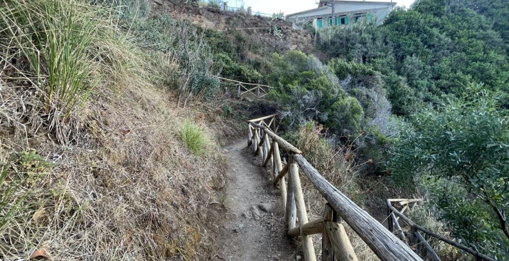 Raggiunta la barra rocciosa che permette di scendere a mare terminano le reti e inizia una bellissima scalinata scavata nella terra.