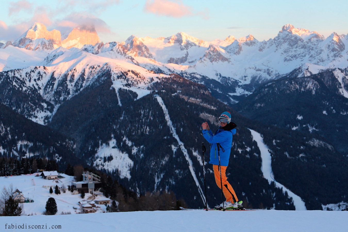 Tramonto sulle Dolomiti della Val di Fassa ripreso dalla piccola località sciistica di Vigo di Fassa - Ciampedie.